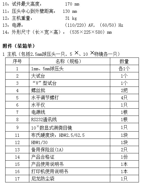 1、本仪器 试验力,8种测试的布氏标尺任意选择;